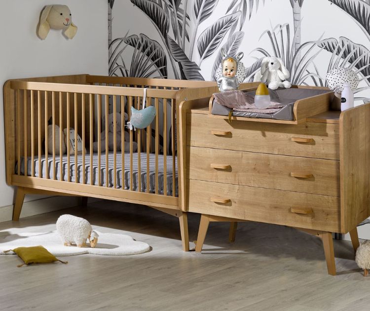 The convertible baby bed can also first be a crib, then a child's bed. This is particularly the case with our OCTAVE vintage convertible baby bed – Walnut. There are also other formats of convertible baby beds such as twin baby beds or combination baby beds for example.