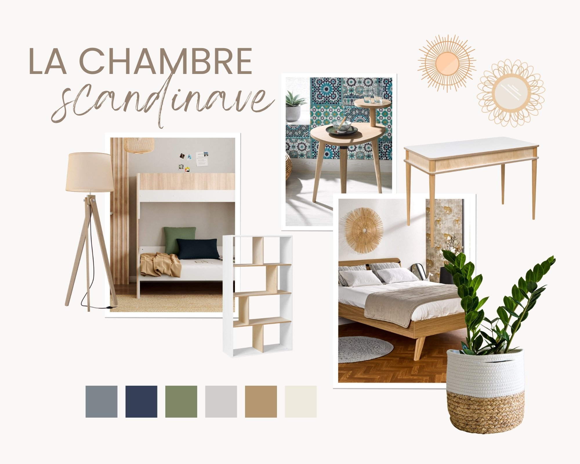 Für die Dekoration sind Rattan, Holz oder auch Seegras untrennbar mit dem skandinavischen Stil verbunden. Finden Sie kleine Objekte oder Dekorationselemente in diesem Geist für ein gelungenes Schlafzimmer im skandinavischen Ambiente.