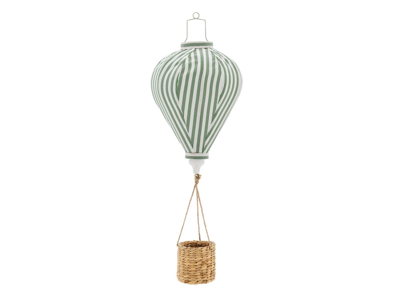 Laden Sie Poesie und Eskapismus in das Kinderzimmer Ihres Kindes mit dem hängenden Heißluftballon-Spielzeug Pomp Mobile Grün von Bloomingville ein. Als Mischung aus Dekorationsobjekt und Fantasiespielzeug transportiert dieser Heißluftballon aus grün-weiß gestreiftem Stoff kleine Figuren und Kuscheltiere in seinem Korb aus Naturfasern. An der Decke aufgehängt, scheint er in der Luft zu schweben und schafft eine sanfte, märchenhafte Atmosphäre, die Groß und Klein in Staunen versetzt.