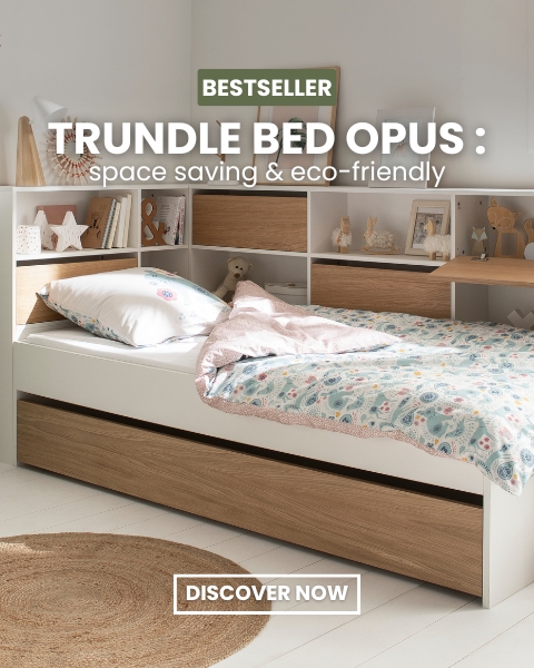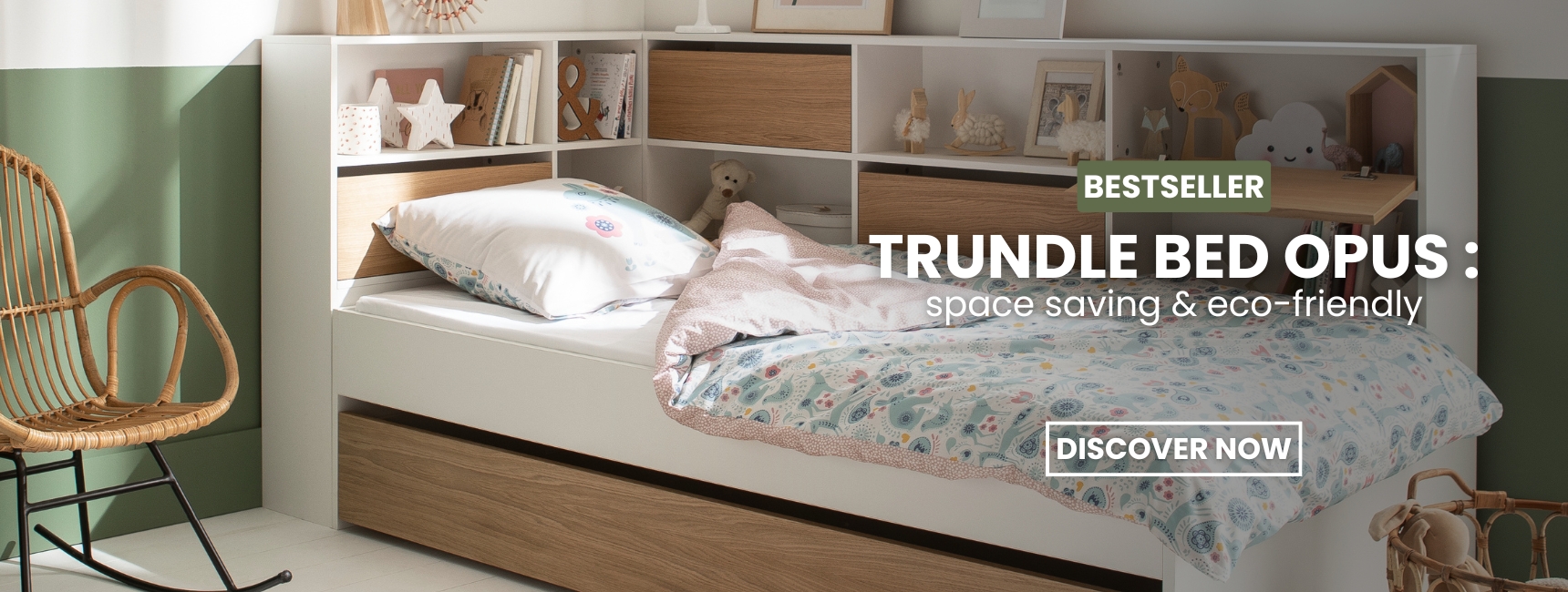 Discover our collections of furniture with trendy and timeless designs that will grow with your children, as well as our 100% French mattresses. For 40 years, our factory has been committed to the comfort and safety of your children by offering furniture made in France, eco-responsible and durable. Baby bed, children's bed, dresser, desk, wardrobe and many other storage solutions for children are waiting to furnish the dream bedroom for the whole family.