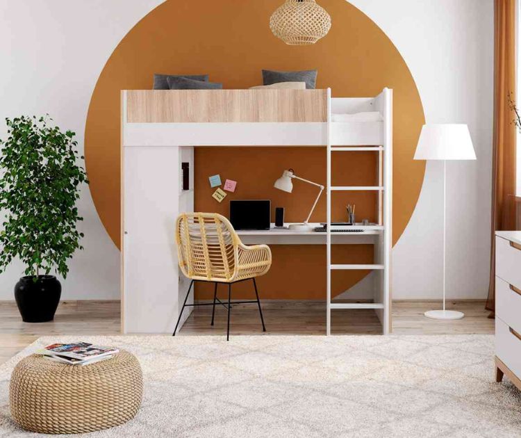 Una vez instalada la cama alta en la habitación de tu adolescente, solo queda amueblar el resto de la estancia.