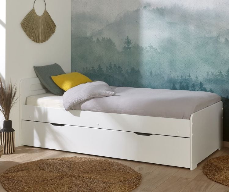 Dans tous les cas, les lits gigognes permettent d’utiliser la place qui se trouve sous le sommier. Ainsi, le lit 90x190 gigogne est parfait pour gagner de la place. D’ailleurs, vous pouvez aussi opter pour un lit gigogne adulte. Le lit gigogne Féroé 90x190 blanc est parfait pour une chambre d’enfant comme pour un adulte dans une chambre d’amis par exemple. Il ne vous reste plus qu’à trouver comment intégrer un lit gigogne dans une chambre d’enfant moderne.