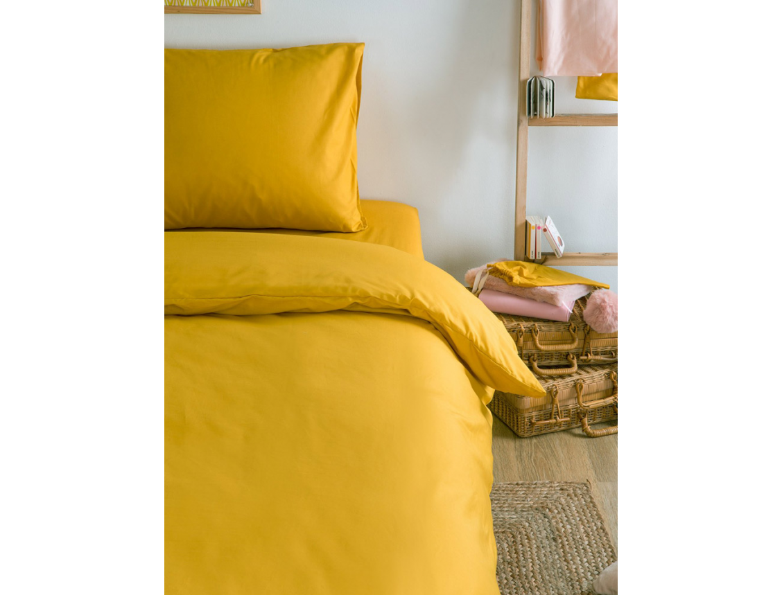 Cette housse de couette 140x150 a un toucher très doux pour adoucir la peau de votre enfant. La couleur Moutarde de cette housse va apporter de la luminosité à votre intérieur.