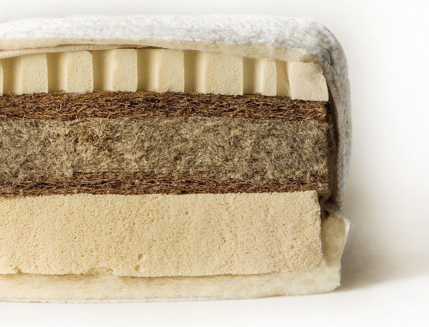 Coeur du matelas : 3 cm de Latex d'origine naturelle (environ 97% de pureté) + 2cm Fibre de Coco + 3cm Chanvre + 2cm