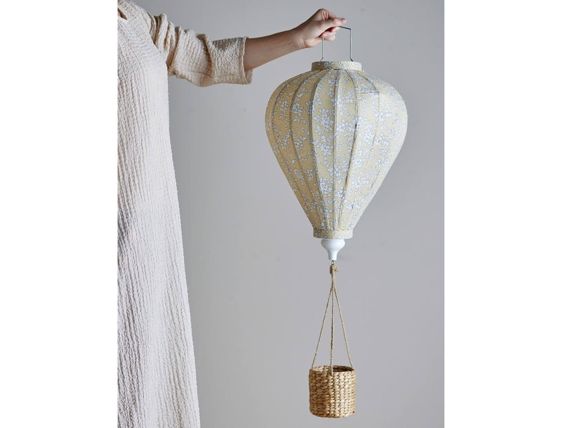 Sospesa al soffitto o vicino a una finestra, questa mongolfiera in tessuto giallo con motivi floreali arricchirà la camera con fascino e originalità. Il suo design raffinato e le sue tonalità luminose creano un'atmosfera rilassante, perfetta per accompagnare sia i momenti di gioco che quelli di riposo. Abbinata ad altri mobili o a una decorazione da parete, diventa un elemento centrale dell'arredamento, capace di trasformare l'atmosfera della stanza in un batter d'occhio.
