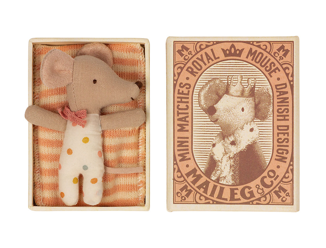 Scopri il mondo fiabesco dei giocattoli Maileg con la topolina neonata femmina. Il tuo bambino creerà delle belle storie grazie a questo grazioso giocattolo in tessuto.