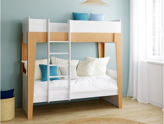 Scoprite il nostro nuovo letto a castello Arche 90x190 separabile per bambini in pannelli MDF di generazione ecologica impiallacciati in quercia. Il suo design essenziale nei colori bianco / legno e le sue linee moderne daranno sicuramente stile alla camera dei bambini!