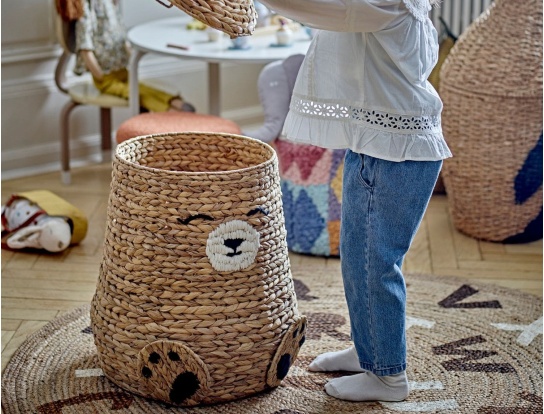 Aggiungi un tocco di dolcezza e fantasia alla cameretta del tuo bambino con il cestino portaoggetti Timone ideato da Bloomingville. Realizzato in fibre naturali di giacinto d'acqua, questo grazioso cestino a forma di orsetto conquista tanto per il suo design giocoso quanto per la sua praticità. Con le sue piccole orecchie, i suoi occhi birichini e le zampe ricamate, diventa un vero compagno di giochi, fungendo al contempo da indispensabile accessorio portaoggetti per l'uso quotidiano.