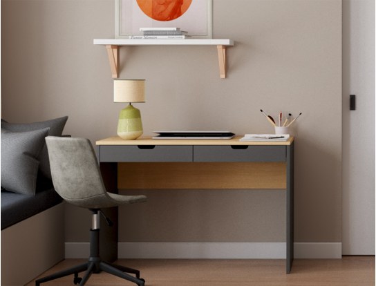 La scrivania antracite e legno MILOR con cassettiera integrata è la scelta perfetta per chi cerca di aggiungere un tocco di sofisticatezza al proprio spazio di lavoro. Con una finitura antracite e legno, questa scrivania sarà un'elegante aggiunta al vostro arredamento interno. Che lavoriate da casa o abbiate bisogno di uno spazio per il vostro laptop, la scrivania MILOR vi offrirà il comfort e la funzionalità di cui avete bisogno.