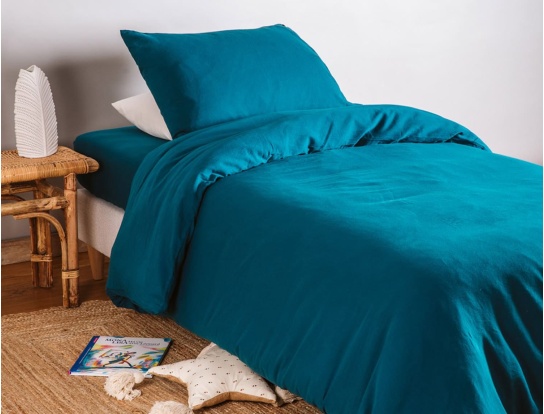 Breng een vleugje welzijn en natuur in de kamer van uw kind met deze dekbedovertrek van 140x150 cm van biologisch katoen, een verantwoorde keuze voor nachten vol zachtheid.